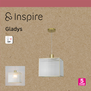Το φωτιστικό οροφής Inspire Gladys συνδυάζει τη μοντέρνα με την εκλεπτυσμένη αρμονία, προσφέροντας σύγχρονη κομψότητα και καθιστώντας το ιδανική επιλογή για κάθε εσωτερικό χώρο. Με ένα κομψό τετράγωνο γυάλινο καπέλο και ένα εκλεπτυσμένο γυαλισμένο μεταλλικό φινίρισμα, αυτό το κρεμαστό φωτιστικό προσθέτει πολυτέλεια και φινέτσα στον χώρο σας. Με καπέλο 30cm x 25cm, μέγιστο ρυθμιζόμενο μήκος 120cm και βάση 12,5cm, παρουσιάζει μια κομψή αρχιτεκτονική συμμετρία, δημιουργώντας ένα εντυπωσιακό στοιχείο στο σπίτι σας. Σχεδιασμένο για λάμπα E27 (δεν περιλαμβάνεται αλλά συνιστάται), σας επιτρέπει να δημιουργήσετε μια ζεστή και φιλόξενη λάμψη σε κάθε δωμάτιο. Ιδανικό για το σαλόνι, την τραπεζαρία ή το διάδρομό σας, το κρεμαστό φωτιστικό Gladys είναι μια ανθεκτική, κομψή και πρακτική επιλογή για σύγχρονους εσωτερικούς χώρους. Με 5ετή εγγύηση, εξασφαλίζει μακροχρόνια αντοχή.