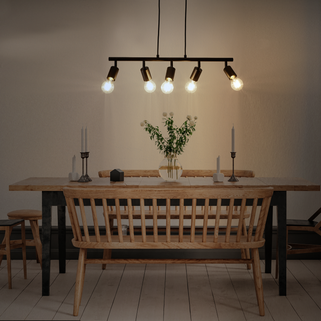 Όταν ο σχεδιασμός επικεντρώνεται στα ουσιώδη. Το κρεμαστό φωτιστικό Lina πλάτους 66 cm ξεχωρίζει με τις καθαρές γραμμές του. Εξαιρετικά πρακτικό με τις περιστρεφόμενες κεφαλές του για να κατευθύνει το φως ανάλογα με τις ανάγκες, θα βρει τη θέση του σε κάθε εσωτερικό χώρο, είτε σύγχρονο, βιομηχανικό είτε σκανδιναβικό. Εξοπλίστε το κρεμαστό φωτιστικό σας με διακοσμητικούς λαμπτήρες LED Lexman, διαφανείς ή κεχριμπαρένιους, και φωτίστε το σπίτι σας εξοικονομώντας ενέργεια. Αυτό το φωτιστικό διατίθεται σε έκδοση 3 φώτων σε στρογγυλή βάση, καθώς και σε φωτιστικό οροφής και μπάρα προβολέα για απλή και πρακτική διακόσμηση. Οι 5 λαμπτήρες LED E27 πωλούνται ξεχωριστά. Αυτό το προϊόν Inspire συνοδεύεται από 5ετή εγγύηση