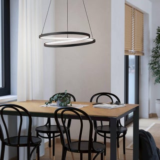 Μπείτε στη σύγχρονη εποχή με την χαλαρή κομψότητα του κρεμαστού φωτιστικού LED RUOTALE, μια γοητευτική προσθήκη σε κάθε σύγχρονο εσωτερικό χώρο. Αυτό το κρεμαστό φωτιστικό περιβάλλει τον εσωτερικό σας χώρο με μια αύρα μινιμαλιστικού στυλ και φέρνει μια νέα και εντυπωσιακή διάσταση στον σχεδιασμό εσωτερικού φωτισμού. Το μαύρο μεταλλικό του σώμα είναι τυλιγμένο γύρω από μια λευκή πλαστική πηγή φωτός στο εσωτερικό, σχηματίζοντας μια χαριτωμένα στρογγυλεμένη μπάρα LED. Η μπάρα αιωρείται ελαφρά στην άκρη τριών καθαρών μαύρων καλωδίων, τραβώντας το βλέμμα. Το θερμό φως μετατρέπει τον πολυέλαιο σε ένα φωτοστέφανο φυσικής ατμόσφαιρας, μεταφέροντας αμέσως το σαλόνι ή την τραπεζαρία σε μια διάσταση άνεσης και ευεξίας. Εξοπλισμένο με ενσωματωμένα LED, καταναλώνει λιγότερη ενέργεια, καθιστώντας το μια βιώσιμη και φιλική προς το περιβάλλον επιλογή φωτισμού. Κατασκευασμένο από υψηλής ποιότητας αλουμίνιο και χάλυβα, το φωτιστικό εσωτερικού χώρου RUOTALE διαθέτει στιβαρότητα που αντέχει στη δοκιμασία του χρόνου και συνοδεύεται από πενταετή εγγύηση Eglo. Με διάμετρο 55cm και ύψος 150cm,