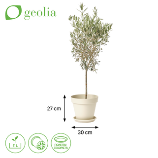 Η πλαστική γλάστρα Taïga Geolia κατασκευάζεται από 65% ανακυκλωμένο πλαστικό και διατίθεται σε διάφορα χρώματα και μεγέθη. Διαθέτει οπές αποστράγγισης και ένα αντίστοιχο πιατάκι διατίθεται ξεχωριστά.