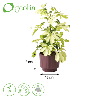 Το κασπώ Alvao Geolia διαθέτει μοντέρνο σχεδιασμό και κατασκευάζεται στην Πορτογαλία από 65% ανακυκλωμένο πλαστικό. Είναι σχεδιασμένο για διακοσμητική χρήση τόσο σε εσωτερικούς όσο και σε εξωτερικούς χώρους.