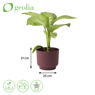 Το κασπώ Alvao Geolia διαθέτει μοντέρνο σχεδιασμό και κατασκευάζεται στην Πορτογαλία από 65% ανακυκλωμένο πλαστικό. Είναι σχεδιασμένο για διακοσμητική χρήση τόσο σε εσωτερικούς όσο και σε εξωτερικούς χώρους.