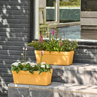 Η γλάστρα Portofino Geolia, κατασκευασμένη στην Πορτογαλία από 65% ανακυκλωμένο πλαστικό, διατίθεται σε διαφορετικά χρώματα για να αναδείξει τις καλύτερες συνθέσεις σας. Περιλαμβάνει πιατάκι νερού και είναι ενισχυμένη με ράβδο για την αποφυγή παραμόρφωσης.