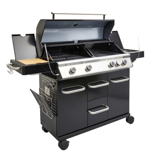 Αυτό το πολυλειτουργικό μπάρμπεκιου είναι τέλειο για ειδικές περιστάσεις.Tο NATERIAL Hudson XL 4+1B-Gas BBQ είναι μπάρμπεκιου υγραερίου 4 καυστήρων + 1 πλαϊνό καυστήρα, 17kW. Ιδανικό για μαγείρεμα έξω για ένα γεύμα 14 ατόμων. Εύκολο στη χρήση: εύκολη ανάφλεξη με ένα μόνο χέρι. Σχάρες και εστία από εμαγιέ χυτοσίδηρο: καλό επίπεδο αδράνειας, ομοιόμορφη κατανομή θερμότητας. Πολλαπλό μαγείρεμα: γκριλ, εστία μαγειρέματος, καπάκι για μαγείρεμα φούρνου και πλαϊνός καυστήρας. Aνθετικό, εργονομικό και πρακτικό. Αποθηκευτικός χώρος για τη φιάλη υγραερίου και δύο συρτάρια για τα μαγειρικά σκεύη. Λάμπα LED για παρακολούθηση του μαγειρέματος ακόμα και μετά τη δύση του ηλίου. Εύκολο καθάρισμα: Πολύ κομψές σχάρες από εμαγιέ. Συλλέκτης λίπους προσβάσιμος από μπροστά και κατάλληλος για δοχεία αλουμινίου. Εύκολη μετακίνηση: 4 περιστρεφόμενοι τροχοί. Μεγάλες λαβές. Καυστήρες από ανοξείδωτο χάλυβα ανθεκτικοί στις καιρικές συνθήκες και στις επιπτώσεις της θερμότητας. Διαστάσεις: Π182,8xΒ54,5xΥ118,5cm Σχάρες: M94cm x Π41,5cm. Εγγύηση 5 χρόνων. Μαγειρέψτε σαν σεφ με το BBQ υγραερίου HUDSON XL: ψητά κρέατα, ψάρια, ψητά αλλά και λαχανικά!