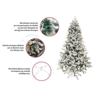 Χριστουγεννιάτικο δέντρο χιονισμένο πράσινο Snowfall 210cm 880 κλαδιά Ø130cm με μεταλλική βάση