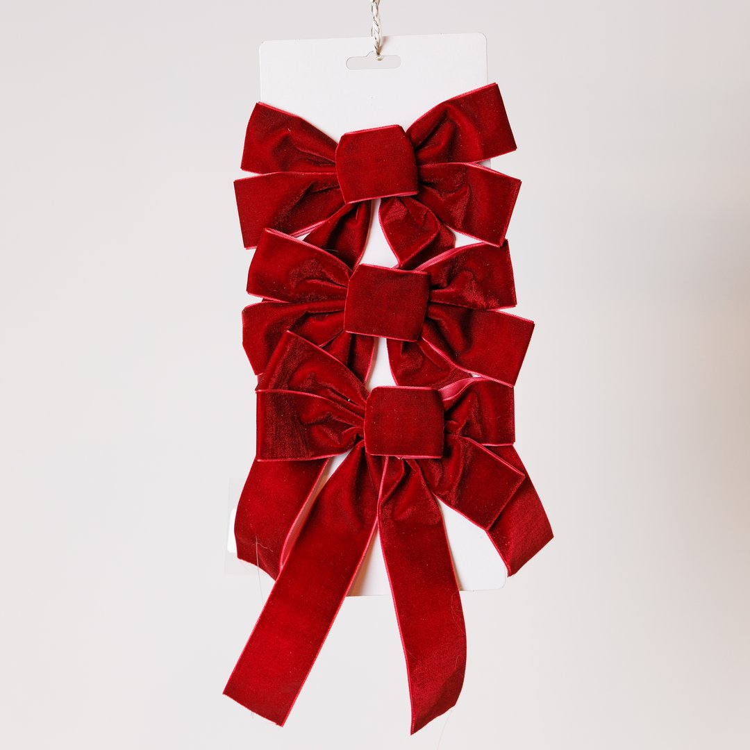 Διακοσμητικοί φιόγκοι σετ 3τμχ από βελούδο κόκκινο 24cm
