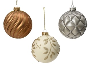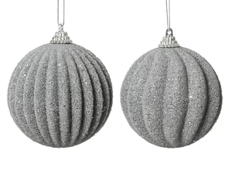 Χριστουγεννιάτικη μπάλα ασημί σε διάφορα σχέδια πλαστική 8cm