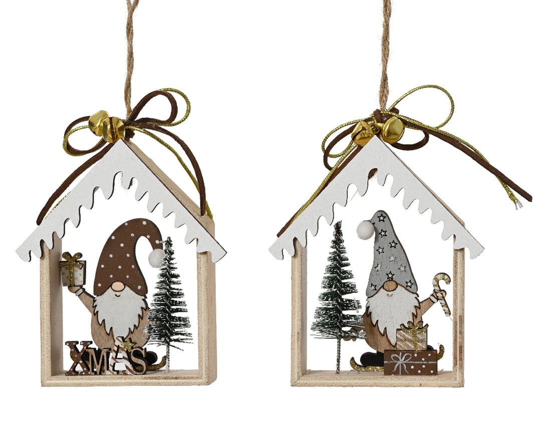 Χριστουγεννιάτικο στολίδι ξύλινο σπιτάκι gnome 11cm