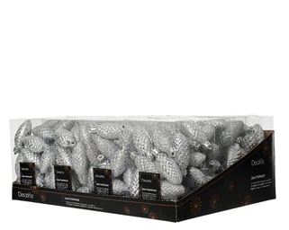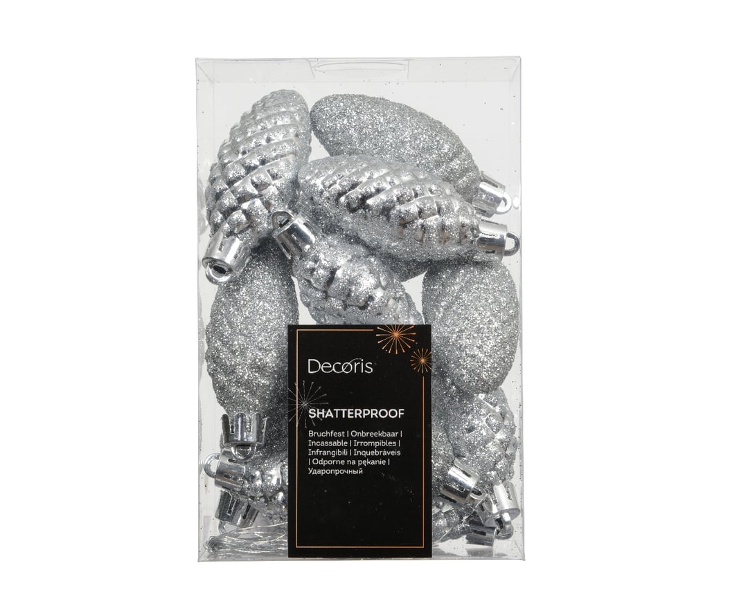 Σετ 12 στολίδια ασημί κουκουνάρια 14cm