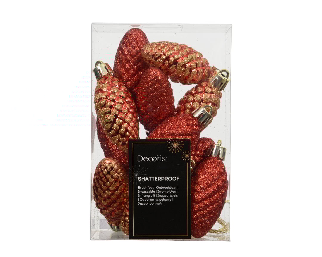 Σετ 12 στολίδια κόκκινα κουκουνάρια 14cm