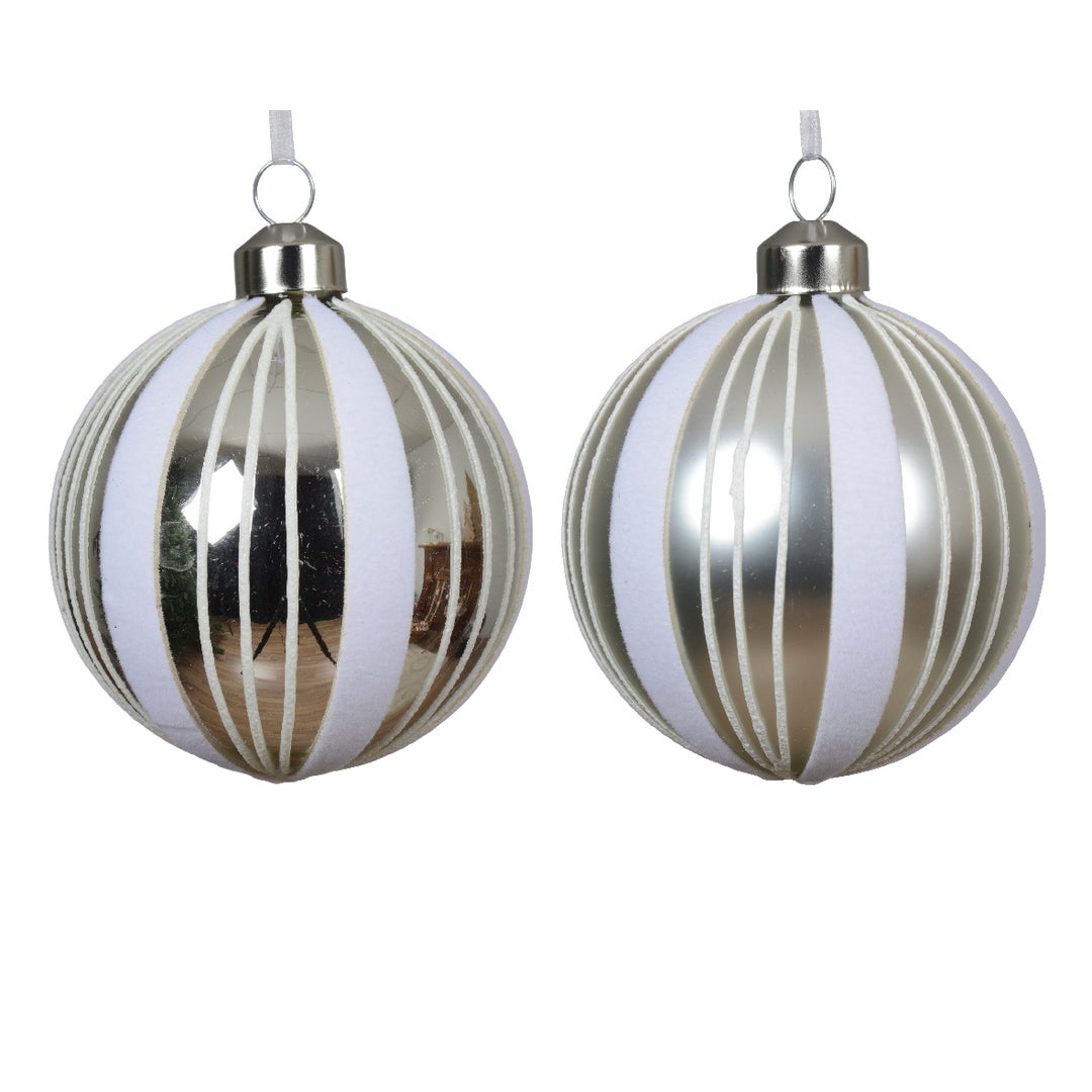 Γυάλινη χριστουγεννιάτικη μπάλα ασημί με ριγές 8cm