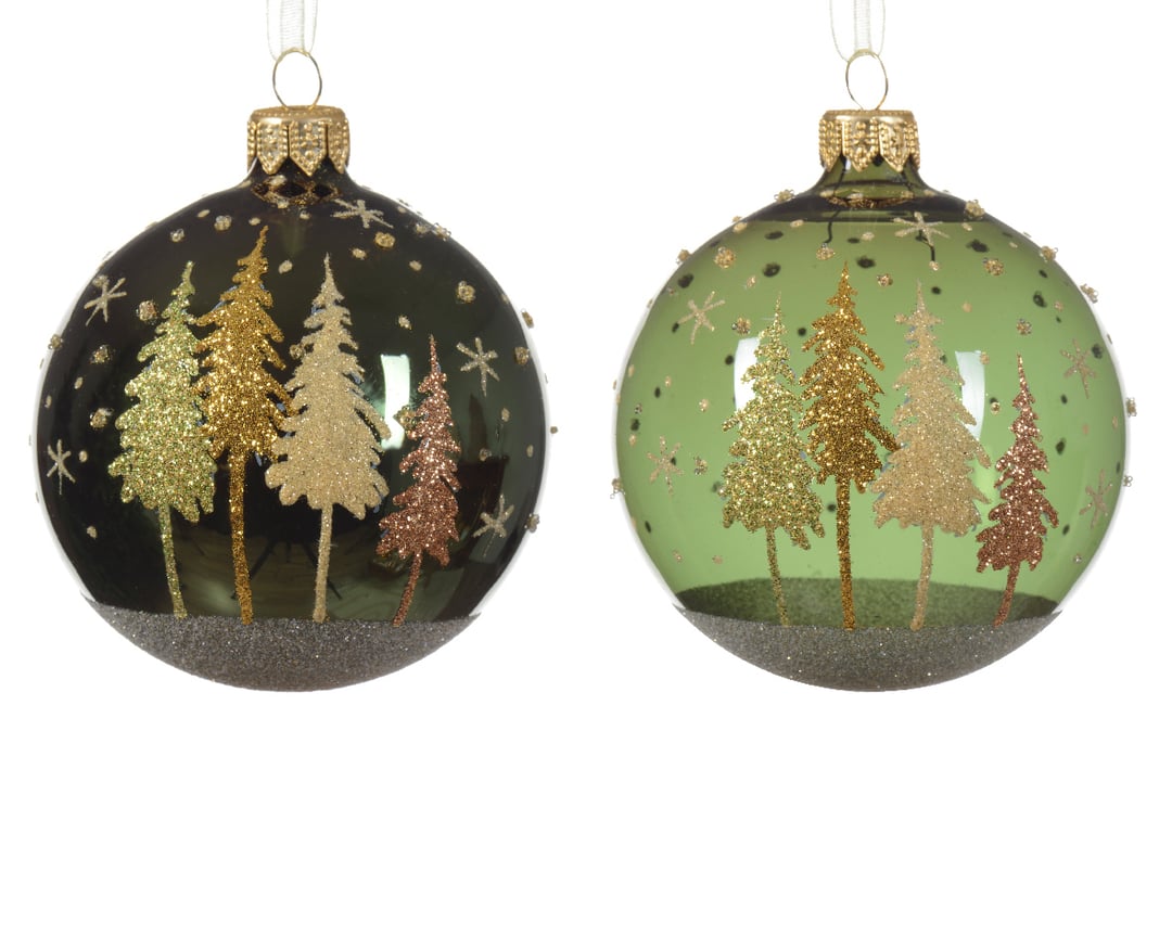 Γυάλινη χριστουγεννιάτικη μπάλα διάφανη με δέντρα Ø8cm