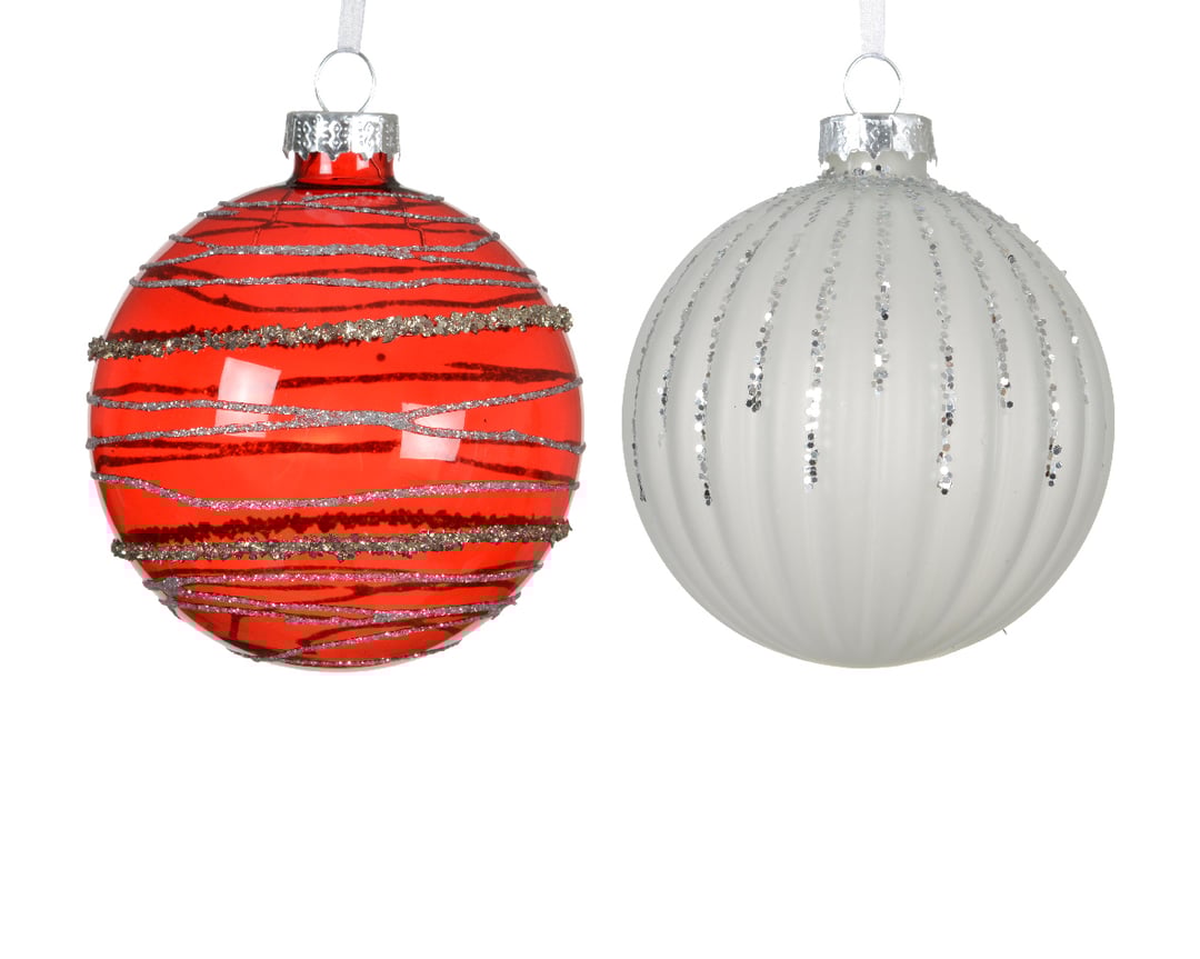 Γυάλινη χριστουγεννιάτικη μπάλα κόκκινο-ασημί Ø8cm