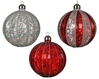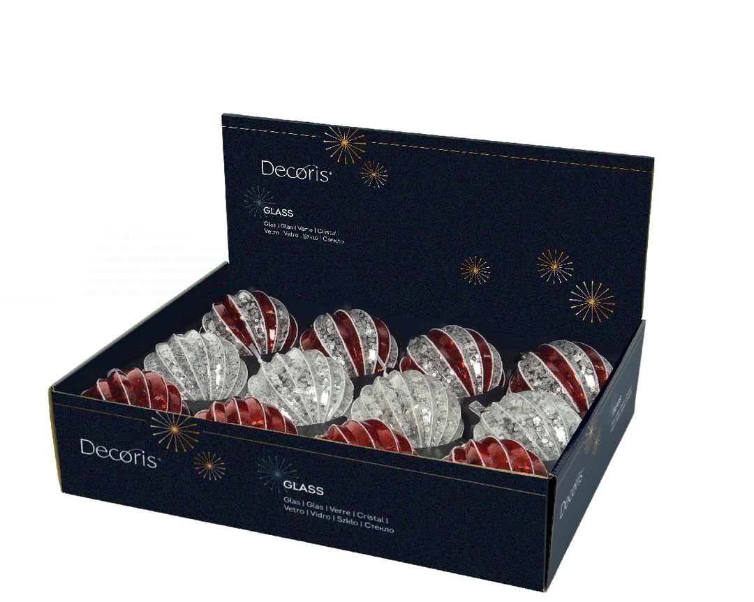 Γυάλινη χριστουγεννιάτικη μπάλα κόκκινο λευκό ριγέ 10cm