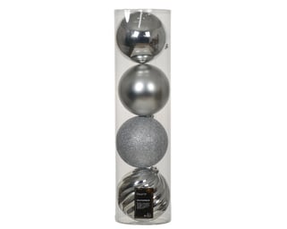 Χριστουγεννιάτικες μπάλες πλαστικές ασημί 14cm σετ 4τμχ