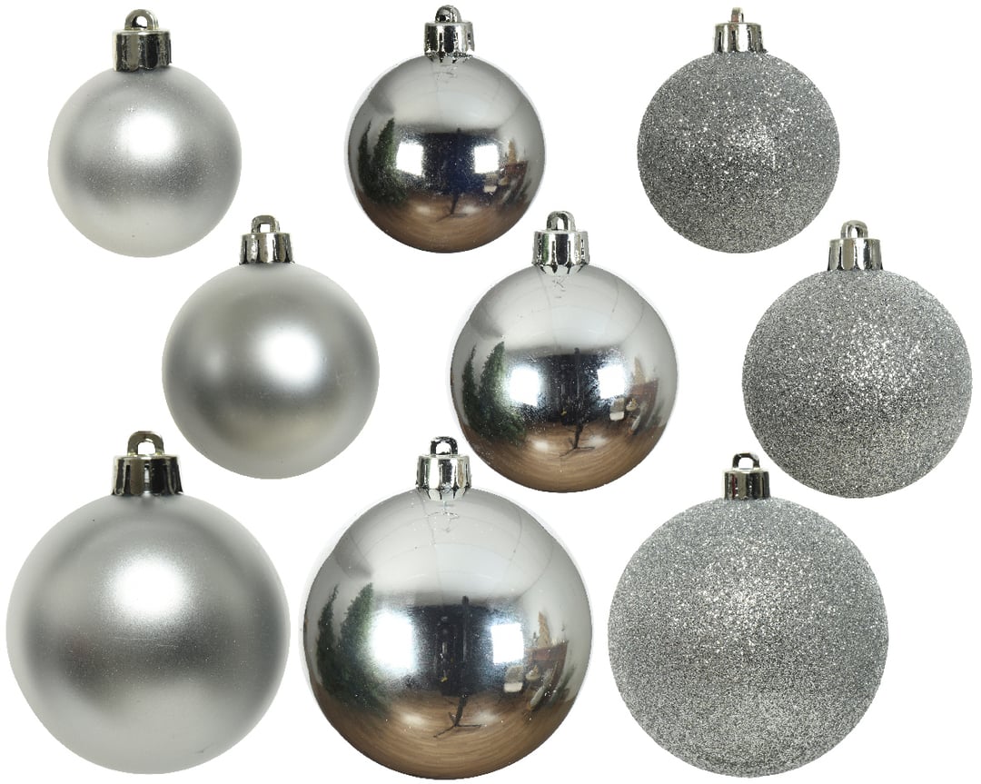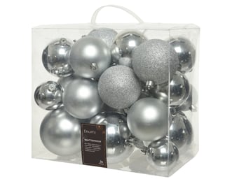 Χριστουγεννιάτικες μπάλες σετ ασημί μιξ πλαστικές 10cm 26τμχ
