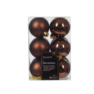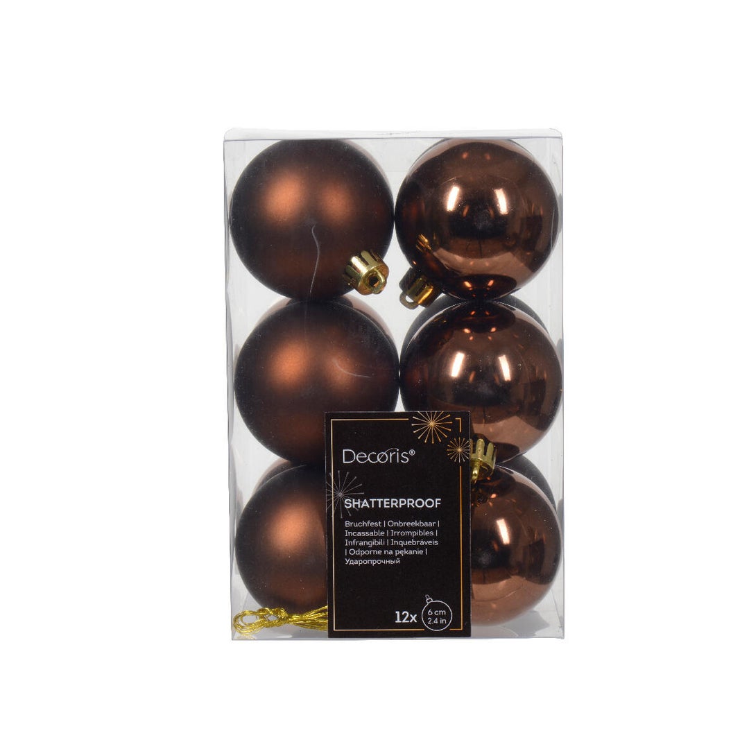 Χριστουγεννιάτικες μπάλες σετ καφέ πλαστικές μιξ 6cm 12τμχ