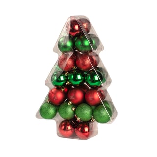Χριστουγεννιάτικες μπάλες σετ πλαστικές 6cm πράσινο-κόκκινο 34τμχ