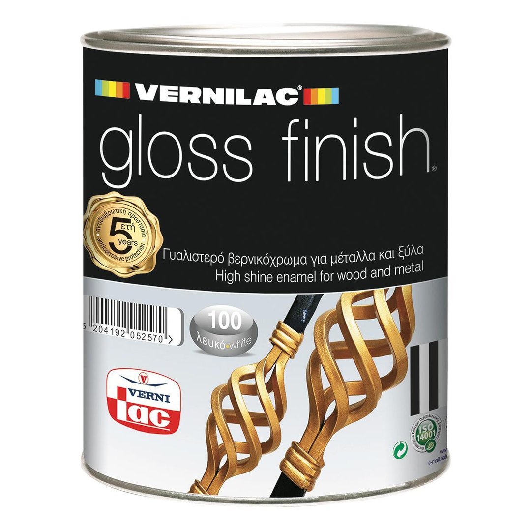 Βερνικόχρωμα VERNILAC GLOSS FINISH ξύλου, μετάλλου, παλαιές βαμμένες επιφάνειες με ριπολίνη, σίδηρο για εσωτερική, εξωτερική χρήση. Απόδοση 15 m²/L ανάλογα του τρόπου βαφής και της απορροφητικότητας της επιφάνειας. Έχει μεγάλη καλυπτικότητα που διατηρείται αμετάβλητη. Δουλεύεται εύκολα, απλώνει πολύ καλά και προσφέρει προστασία και ομορφιά.