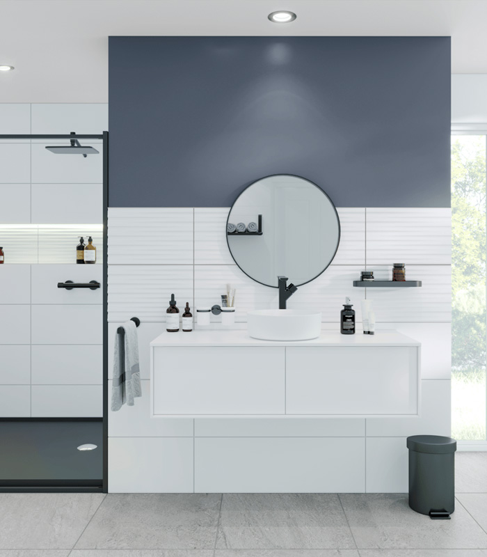 Η διακόσμηση γίνεται τολμηρή. Τα γεωμετρικά σχέδια και τα τρισδιάστατα ανάγλυφα σχέδια σε πλακάκια δημιουργούν εστίαση και προσθέτουν “βάθος” στο μπάνιο σου. Είναι ιδανικά για:
