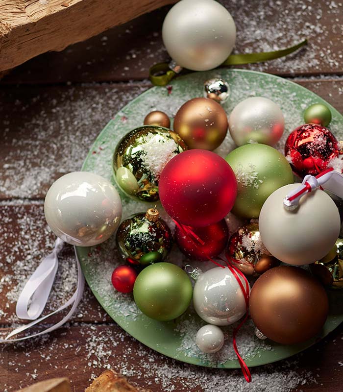 Ξεκίνα με τα μεγάλα στολίδια τοποθετώντας τα πιο βαθιά στα κλαδιά, ώστε να δημιουργήσεις φυσικό βάθος. Στη συνέχεια, πρόσθεσε τα μεσαίου μεγέθους για να γεμίσεις αρμονικά το δέντρο και ολοκλήρωσε με τα μικρότερα ή πιο ιδιαίτερα μπροστά, ώστε να λειτουργούν σαν μικρές ξεχωριστές πινελιές.