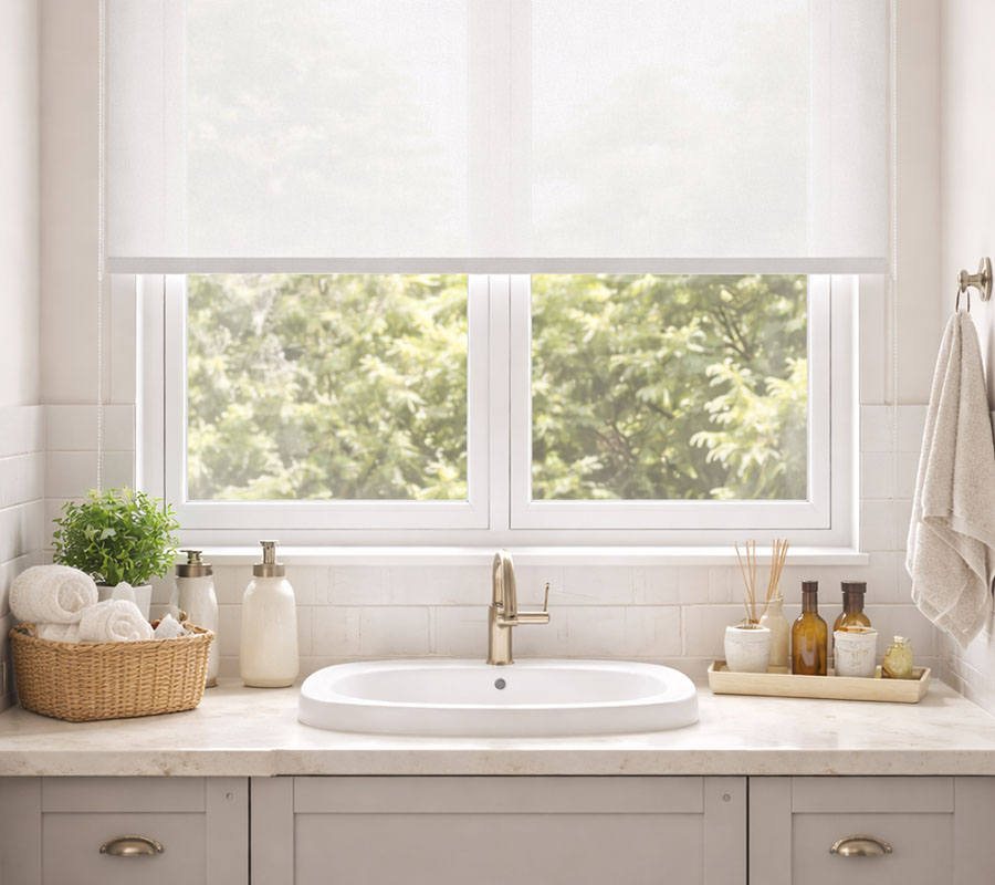 Στο μπάνιο χρειάζεσαι μια λύση που να αντέχει καλύτερα στην υγρασία και να καθαρίζεται εύκολα. Ταυτόχρονα, η ιδιωτικότητα είναι συνήθως απαραίτητη, οπότε η ρολοκουρτίνα που θα επιλέξεις πρέπει να καλύπτει και αυτή την ανάγκη. Εδώ έχει σημασία να προτιμήσεις ένα υλικό που δεν χαλάει εύκολα από τις συνθήκες του χώρου και να δώσεις προσοχή στο πόσο καλά καλύπτει το παράθυρο, ώστε να νιώθεις άνετα οποιαδήποτε ώρα της ημέρας.