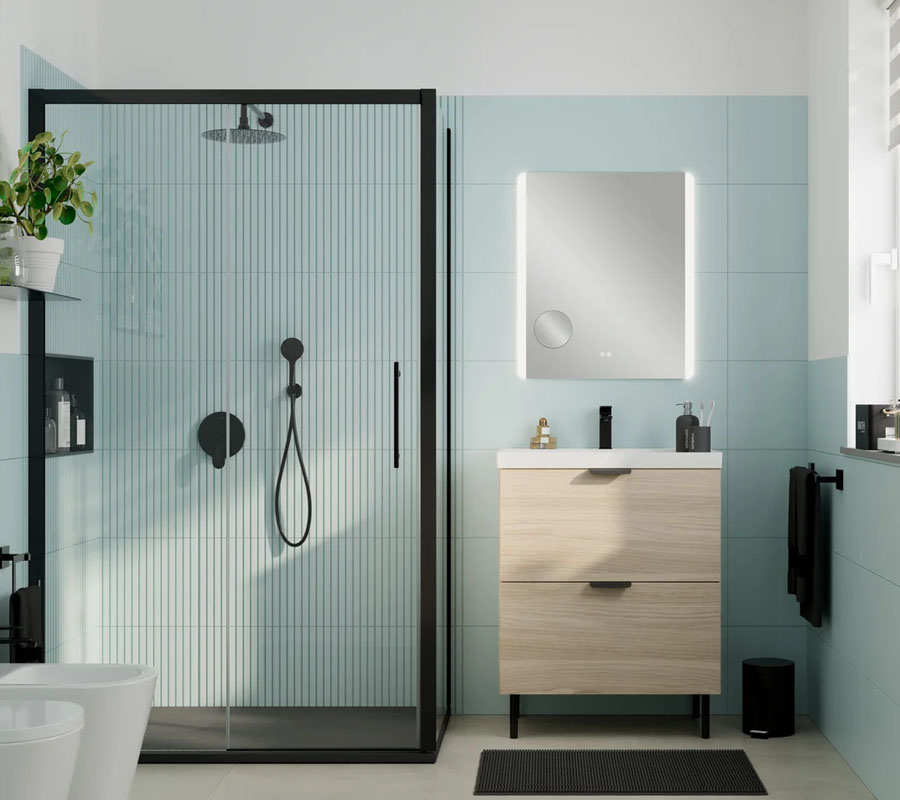 2. Walk-in καμπίνες ντους χωρίς πλαίσιο: Οι walk-in καμπίνες δημιουργούν αίσθηση πολυτέλειας και ευρυχωρίας, είναι ιδανικές για μικρά μπάνια γιατί δεν «κόβουν» οπτικά τον χώρο και διευκολύνουν την πρόσβαση χωρίς σκαλοπάτια.