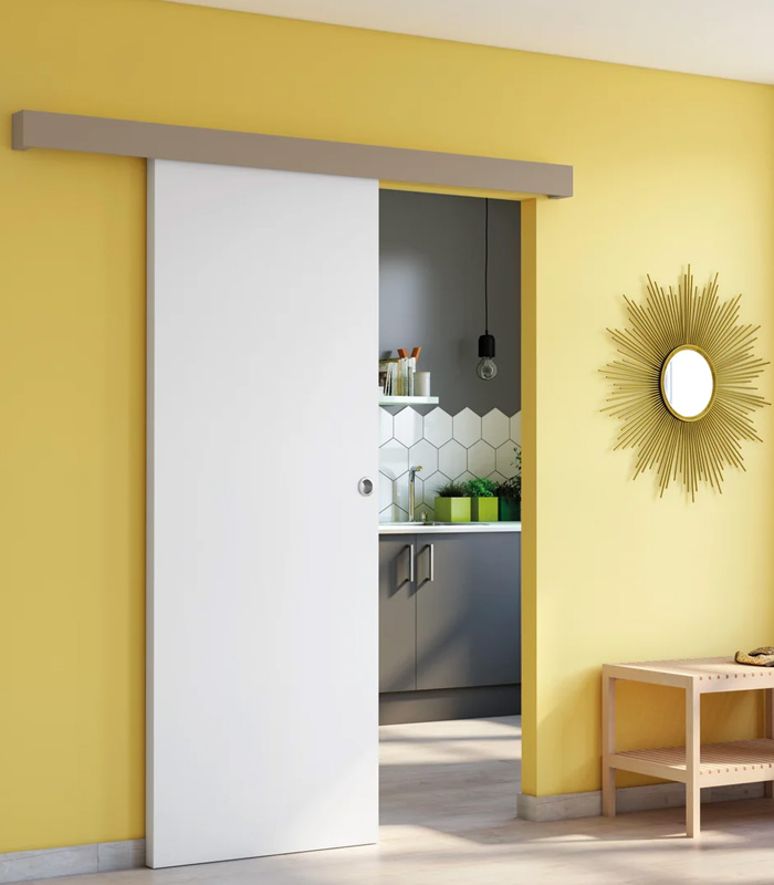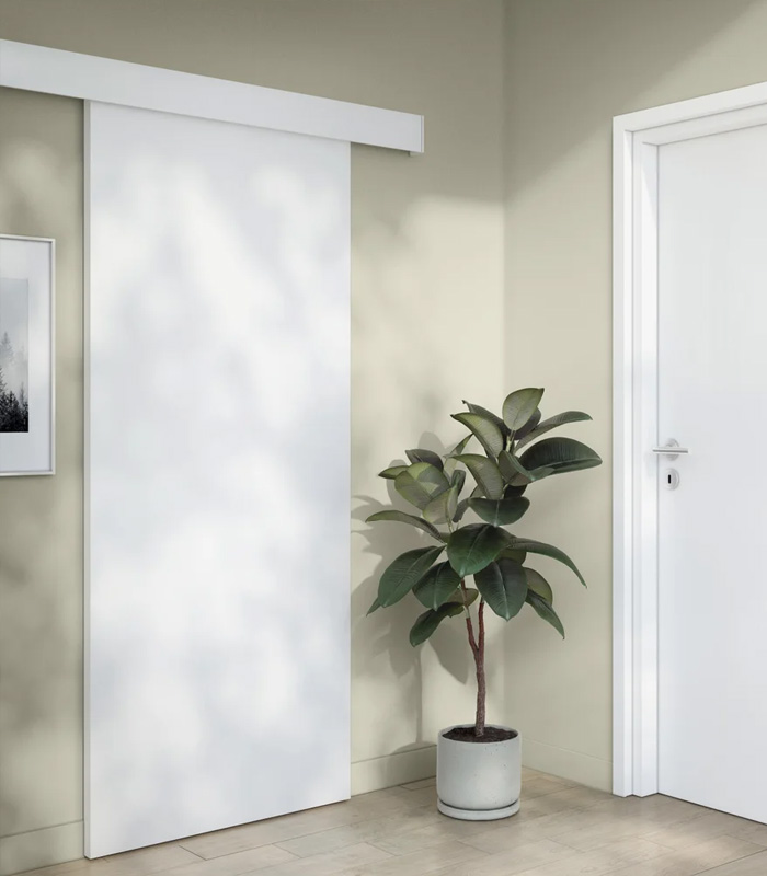 Έχεις ράφια, πλυντήριο, θερμοσίφωνα ή κουτί ρεύματος σε εμφανές σημείο; Κάλυψέ τα έξυπνα με μια λευκή flat συρόμενη πόρτα που δένει με τον τοίχο και γίνεται σχεδόν αόρατη. Λειτουργεί και σαν τοίχος και διατηρείς την οργάνωση του χώρου