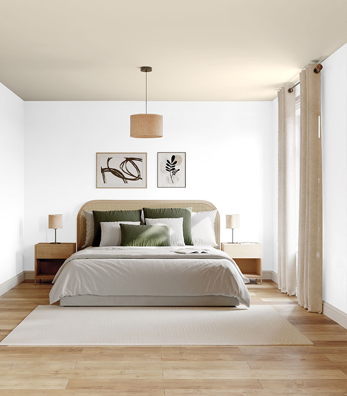 | Το υπόλοιπο δωμάτιο έχει ήρεμη, ουδέτερη διακόσμηση | Θέλεις πιο φυσικό, minimal ή scandi αποτέλεσμα |