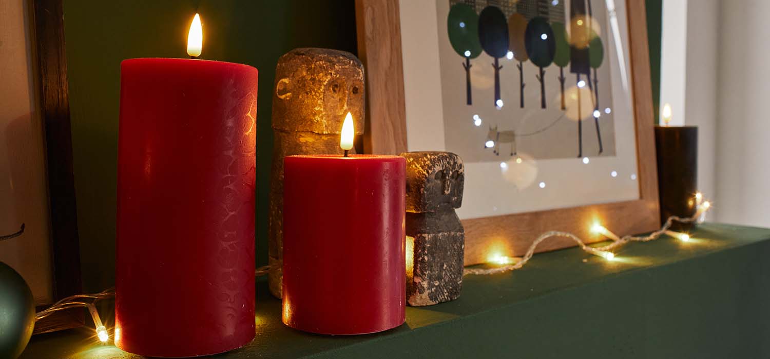 Τα κεριά LED προσφέρουν ζεστό φως χωρίς θερμότητα και έτσι είναι ιδανικά και για υπνοδωμάτια ή διαμερίσματα με παιδιά ή κατοικίδια. Συνδύασέ τα με μικρά φωτιζόμενα δεντράκια, γυάλες ή διακοσμητικά με glitter για να δημιουργήσεις μια cozy και χαλαρωτική γωνιά.