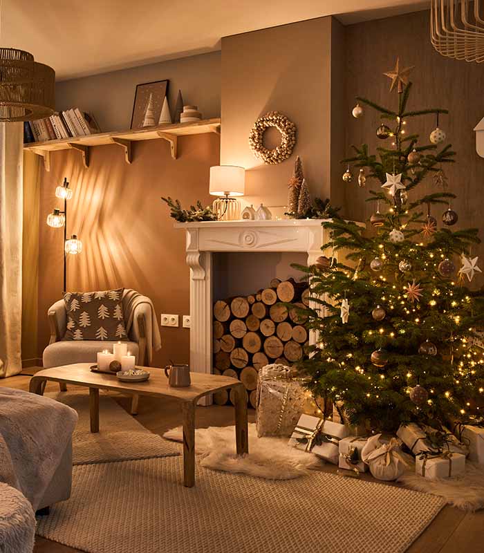 Το χριστουγεννιάτικο δέντρο είναι το απόλυτο statement κομμάτι του σαλονιού και ο φωτισμός του παίζει καθοριστικό ρόλο. Αν θέλεις ευελιξία, επέλεξε dimmable φωτάκια για να μπορείς να ρυθμίζεις την ένταση ανάλογα με τη στιγμή. Εναλλακτικά, RGB φωτάκια με εναλλαγή χρωμάτων ή λειτουργία αλλαγής ρυθμού είναι ιδανικά για πιο παιχνιδιάρικο ύφος.