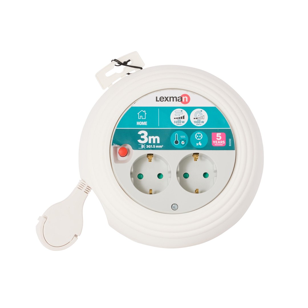 Πρακτική μπαλαντέζα LEXMAN 3 μέτρων, 4 θέσεων, με διατομή καλωδίου 3x1.5mm² και 16Α, για εύκολη σύνδεση συσκευών σε κοντινή απόσταση.
