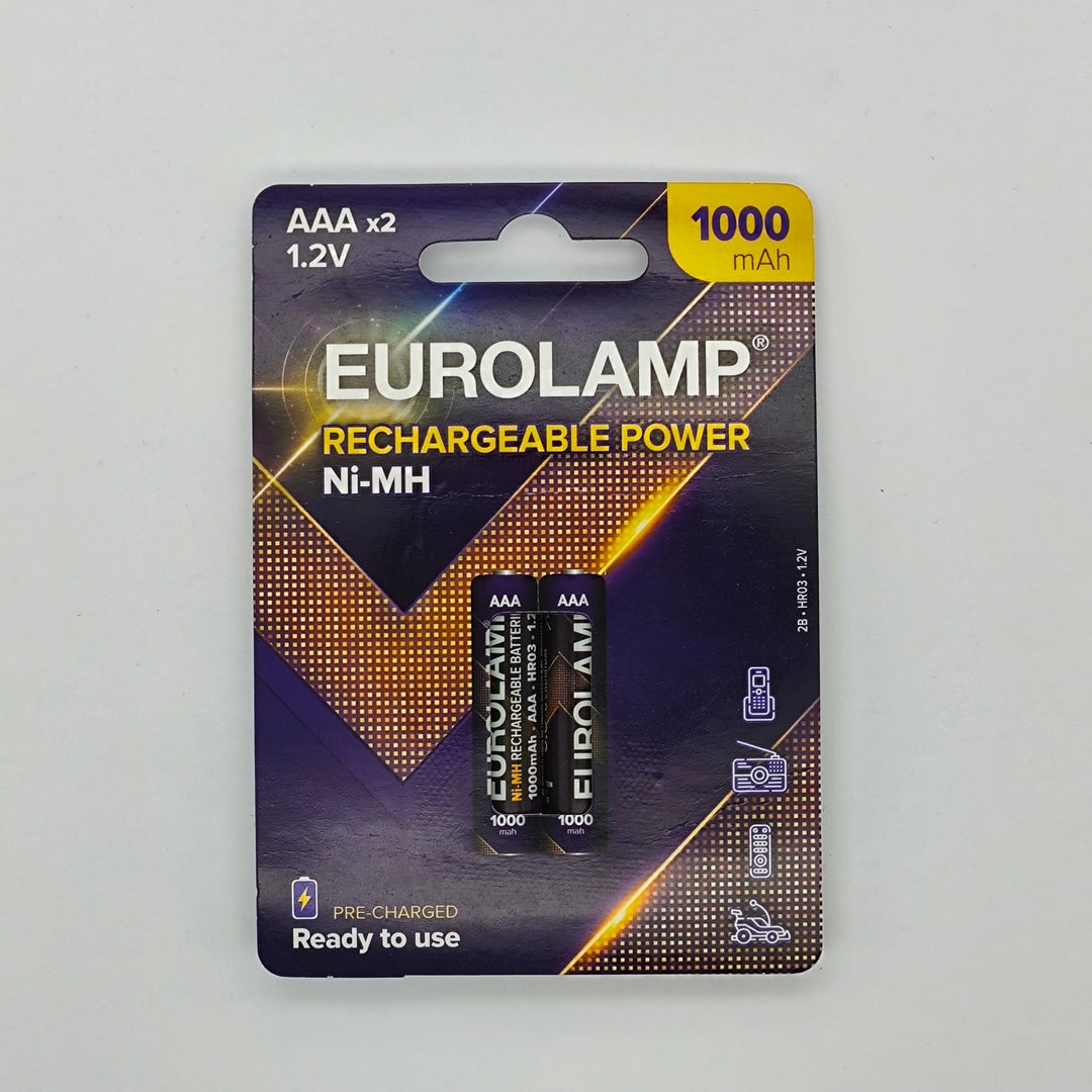 Οι επαναφορτιζόμενες μπαταρίες της Eurolamp είναι τύπου Ni-MH (Νικελίου-Υδριδίου Μετάλλου), ο οποίος είναι ο πιο δημοφιλής και προσφέρει μεγαλύτερη χωρητικότητα με πιο φιλικά προς το περιβάλλον υλικά. Αντικατέστησε τις μπαταρίες Ni-Cd (Νικελίου-Καδμίου) και, όπως κι εκείνες, πρέπει να επαναφορτίζονται μόνο όταν έχουν αποφορτιστεί εντελώς. Αποφορτίζονται αυτόματα γρήγορα όταν είναι αποθηκευμένες. Πωλούνται σε συσκευασία 2 τεμαχίων.