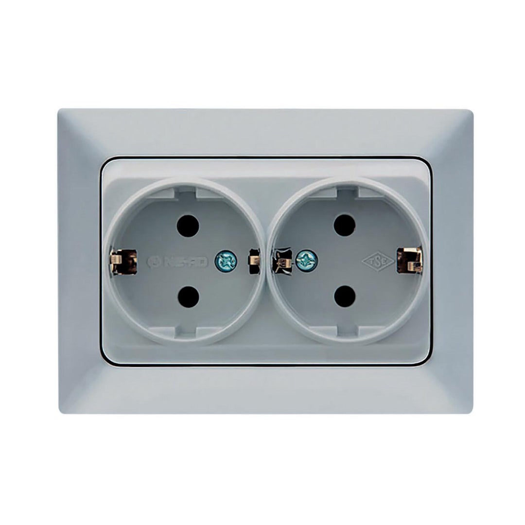 Πρίζα σούκο διπλή NEAD με τύπο τοποθέτησης χωνευτό, από πλαστικό, σε σχήμα τετράγωνο, για εσωτερική χρήση. Για να επιλέξετε το κατάλληλο διακοπτικό υλικό που ταιριάζει στο χώρο σας