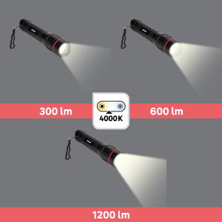 Φακός Lexman χειρός από αλουμίνιο με 3 λειτουργίες και εντυπωσιακή φωτεινότητα 1200 lumens, διαθέτοντας λειτουργία zoom. Η στιβαρή κατασκευή του τον καθιστά ανθεκτικό για κάθε χρήση σε εξωτερικούς χώρους ή εργασίες.