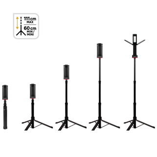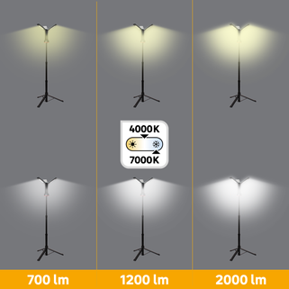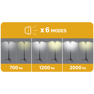 Φακός εργασίας LEXMA με τρίποδο, 3 λειτουργίες και φωτεινότητα 2000 lumen για σταθερό και δυνατό φωτισμό.