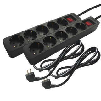Πολύπριζο ασφαλείας σε μαύρο τύπου πρίζας σούκο για να συνδέσεις περισσότερες από μια ηλεκτρικές συσκευές, Προστάτεψε τον ηλεκτρονικό εξοπλισμό σου από τις απότομες διακυμάνσεις του ρεύματος. Η συσκευασία περιλαμβάνει 2 τεμάχια.