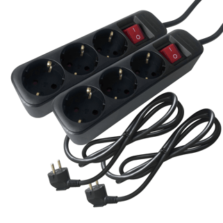 Σετ 2 πολύπριζα 3 θέσεων με διακόπτη 1,5m μαύρα 3x1,5mm²