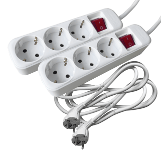 Σετ 2 πολύπριζα 3 θέσεων με διακόπτη 1,5m λευκά 3x1,5mm²