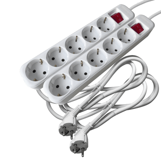 Σετ 2 πολύπριζα 5 θέσεων με διακόπτη 1,5m λευκά 3x1,5mm²