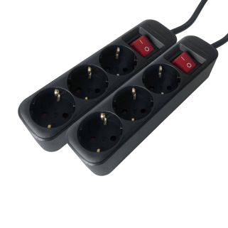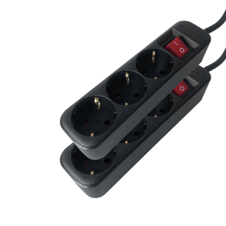 Σετ δύο πολύπριζων 3 θέσεων με διακόπτη και καλώδιο 1,5 μέτρου, σε μαύρο χρώμα. Ιδανικά για οικιακή και επαγγελματική χρήση, με ασφάλεια και πρακτικότητα.