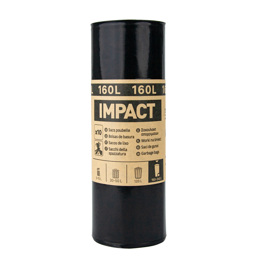 Σακούλες κάδου απορριμμάτων IMPACT 160 λίτρων, βαρέως τύπου, κατάλληλες για μεγάλους επαγγελματικούς κάδους ή εργοτάξια.
