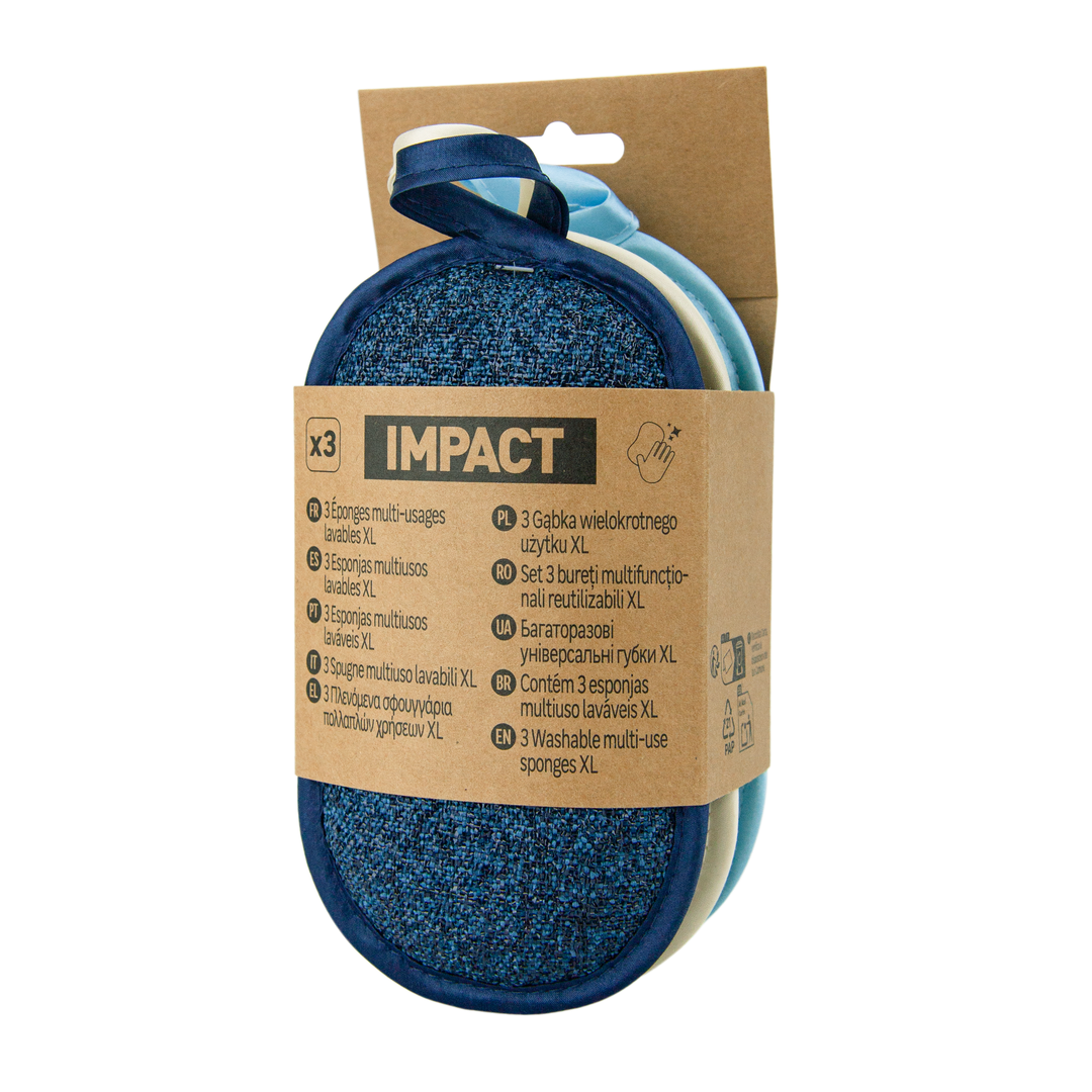 Μεγάλα σφουγγάρια (XL) μικροϊνών IMPACT, σε συσκευασία 3 τεμαχίων, για γρήγορο καθάρισμα μεγάλων επιφανειών.