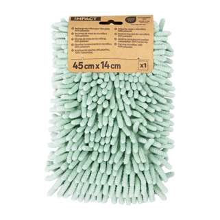 Αυτό το ανταλλακτικό μικροϊνών σενίλ μήκους 45 cm και πλάτους 14 cm εξασφαλίζει βαθύ καθαρισμό και μέγιστη απορρόφηση. Με πιστοποίηση Oeko-Tex, εγγυάται ένα ύφασμα απαλλαγμένο από επιβλαβείς ουσίες. Η ειδική του υφή απομακρύνει αποτελεσματικά τη βρωμιά και προσαρμόζεται εύκολα στις περισσότερες σφουγγαρίστρες.
