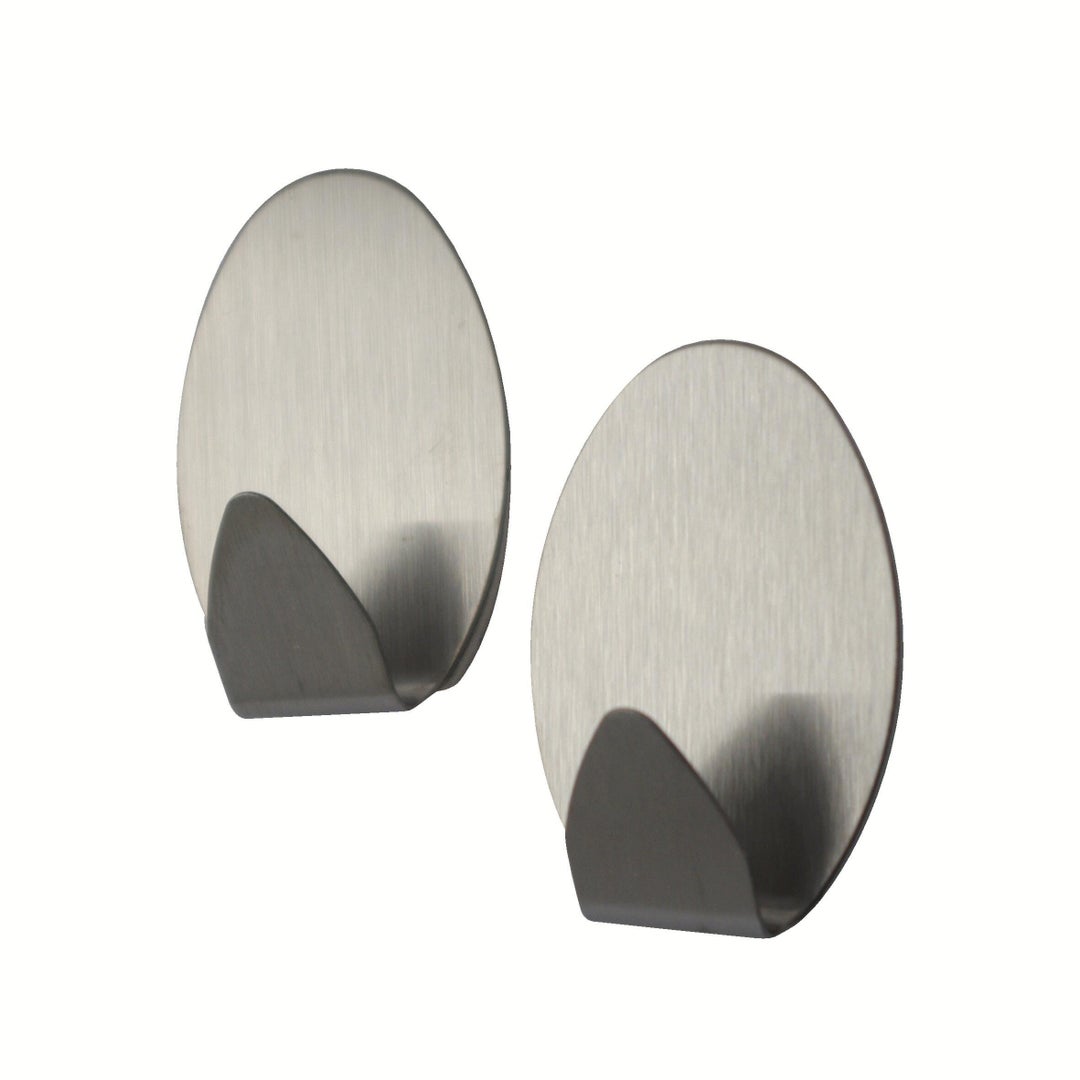 Γάντζος από inox σε ασημί χρώμα κατάλληλος για την τοποθέτηση και την φύλαξη ρούχων και αντικειμένων. Τοποθετείται εύκολα αυτοκόλλητη στον τοίχο, στην πόρτα και οπουδήποτε σε βολεύει ανάλογα με τον χώρο σου. H συσκευασία περιλαμβάνει 2 τεμάχια