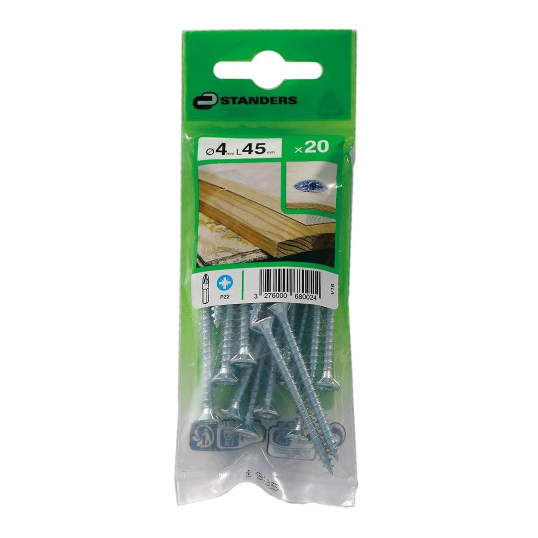 Nοβοπανόβιδα STANDERS από χάλυβα σε ασημί χρώμα κατάλληλη για χρήση σε ξύλο εσωτερικού χώρου. H συσκευασία περιλαμβάνει 20 τεμάχια.