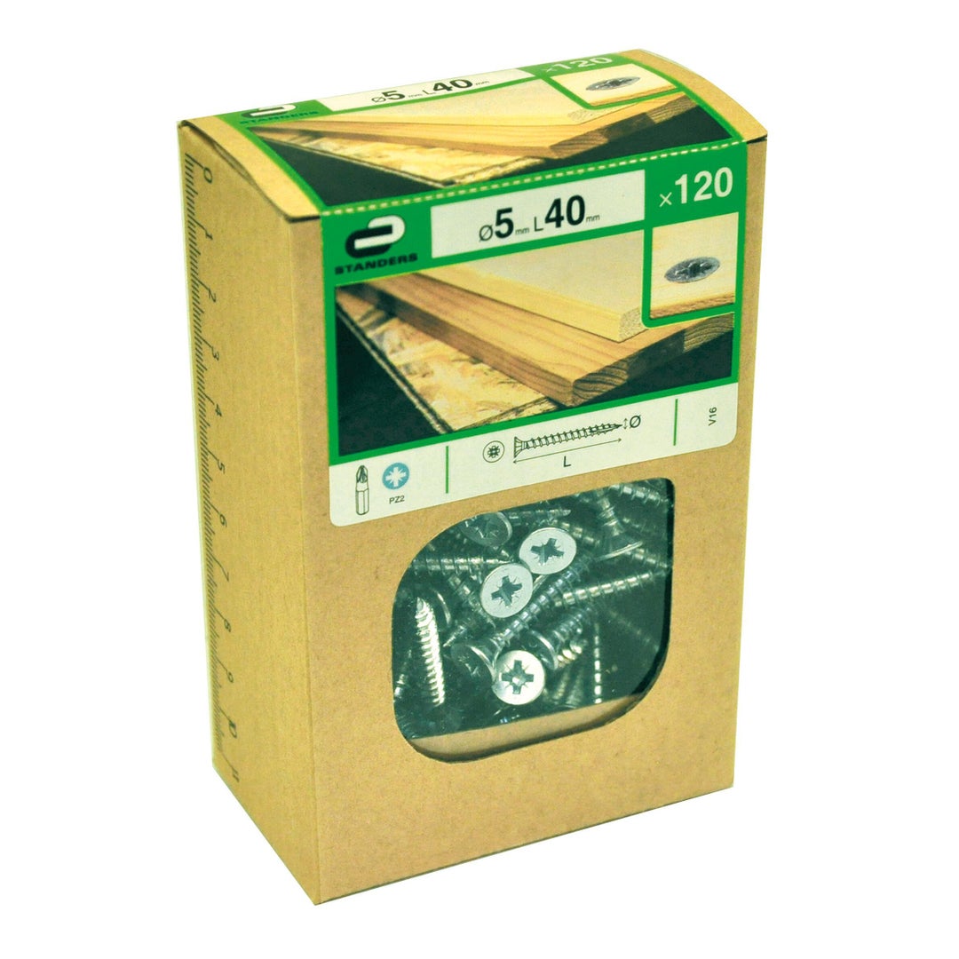 Nοβοπανόβιδα STANDERS από χάλυβα σε ασημί χρώμα κατάλληλη για χρήση σε ξύλο εσωτερικού χώρου. H συσκευασία περιλαμβάνει 120 τεμάχια.