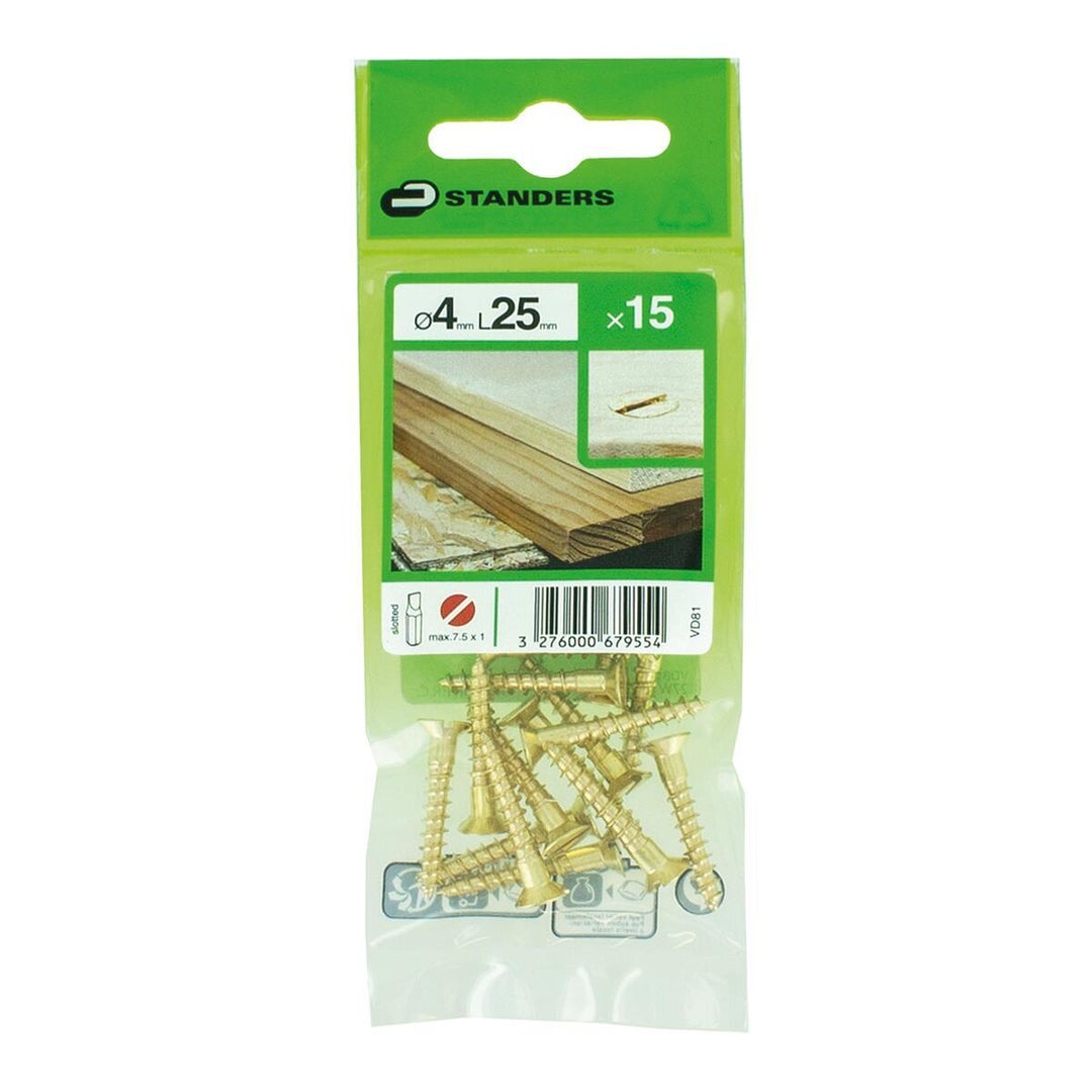 Nοβοπανόβιδα STANDERS από ορείχαλκο σε κίτρινο χρώμα κατάλληλη για χρήση σε ξύλο εσωτερικού χώρου. H συσκευασία περιλαμβάνει 15 τεμάχια.