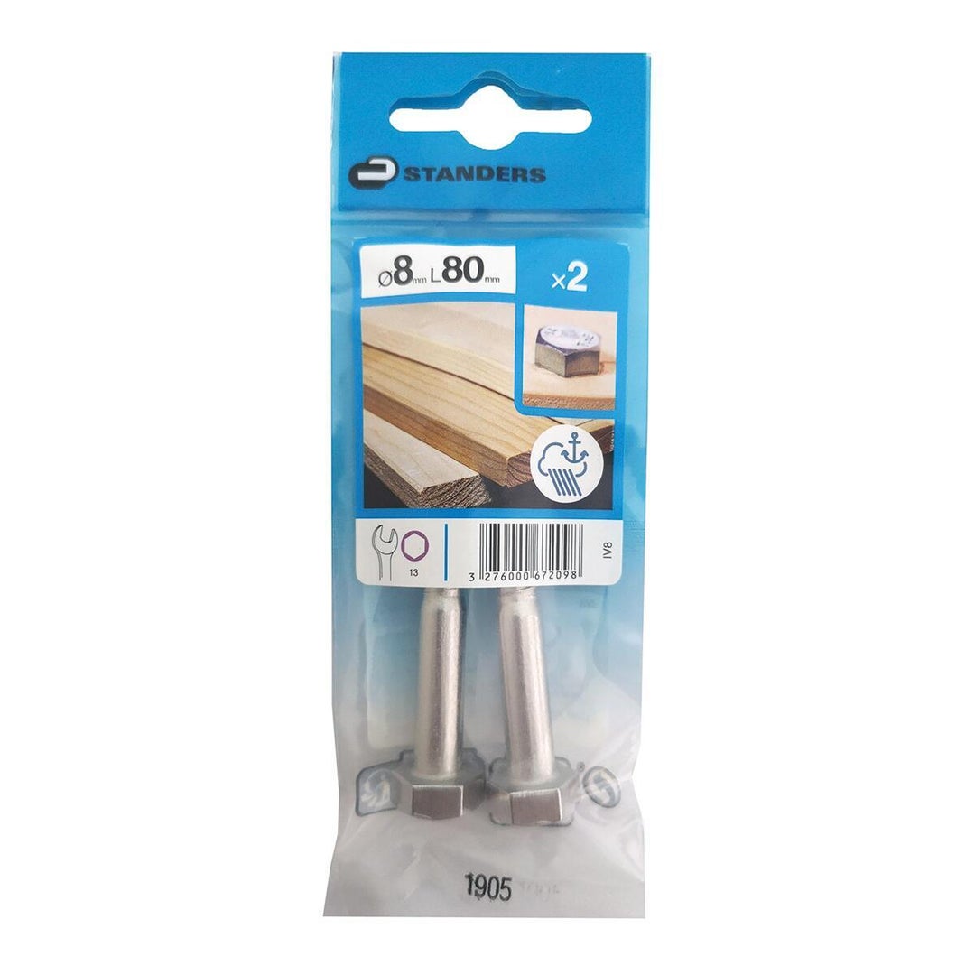 Στριφώνι STANDERS από inox σε ασημί χρώμα κατάλληλο για χρήση σε ξύλο εξωτερικού χώρου. H συσκευασία περιλαμβάνει 2 τεμάχια.