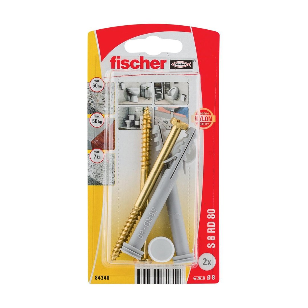 Σετ στήριξης FISCHER S8 RD Ø8xM80mm σε χρυσό χρώμα κατάλληλο για εφαρμογή σε τσιμέντο, τούβλο. Τοποθετείται εύκολα και γρήγορα παρέχοντας ασφαλή αγκύρωση, αντοχή στον χρόνο και σταθερότητα στην χρήση. Η συσκευασία περιέχει βίδα, τάπα, βύσματα.